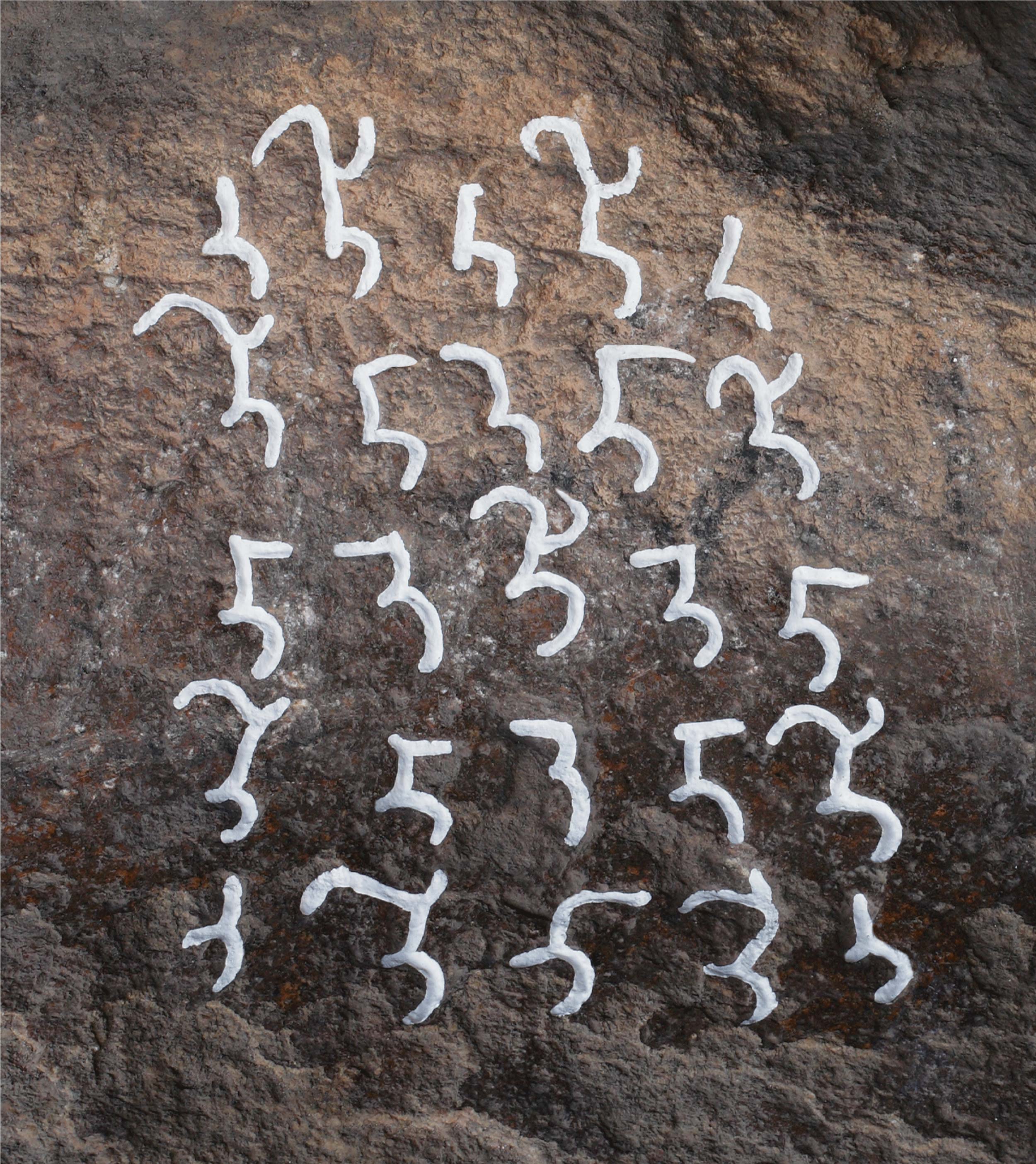 1. The inscription is a musical notation composed of the syllables ta, tā, tē and tai arranged symmetrically in five columns and five rows. See 87 and Commentary (86 & 87).