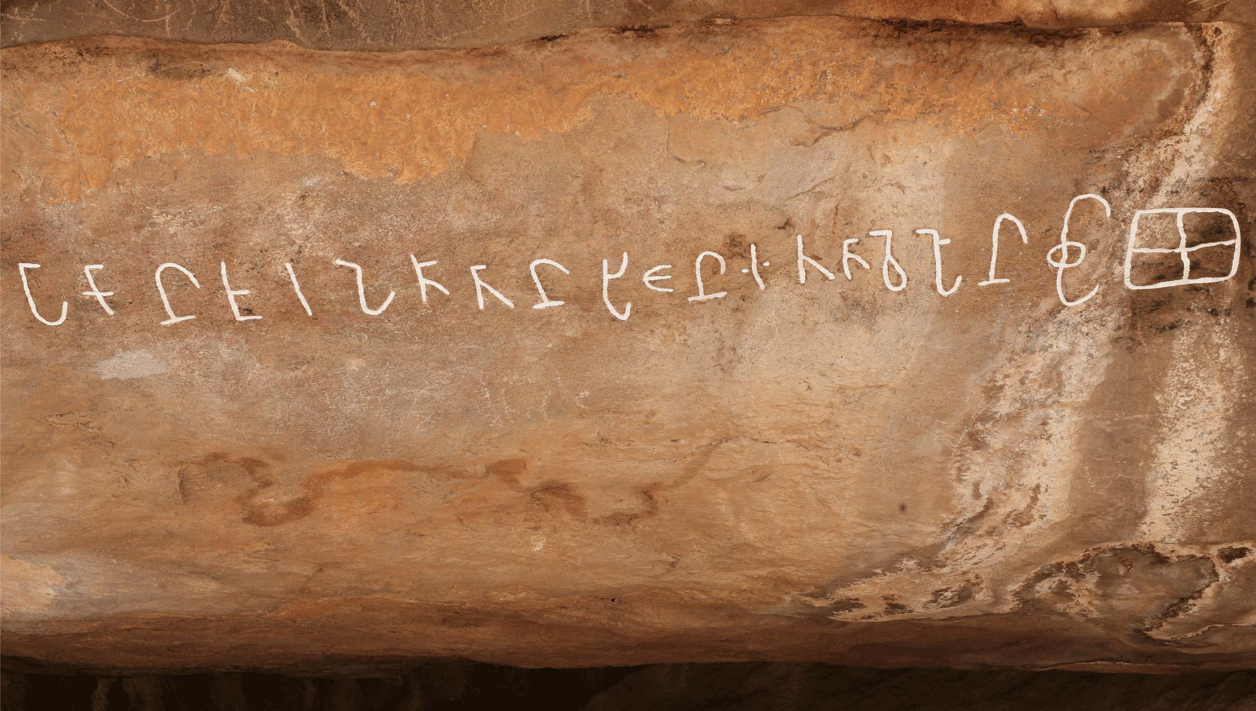 The third inscription (from left) on the brow of the cave. This is read as the middle inscription by HKS, KVS and others following their lead.