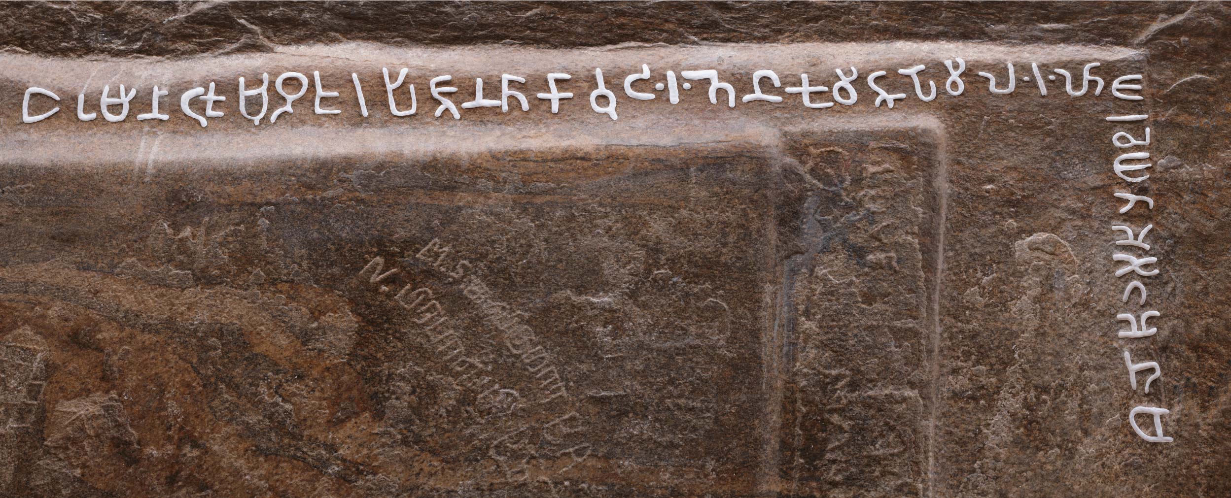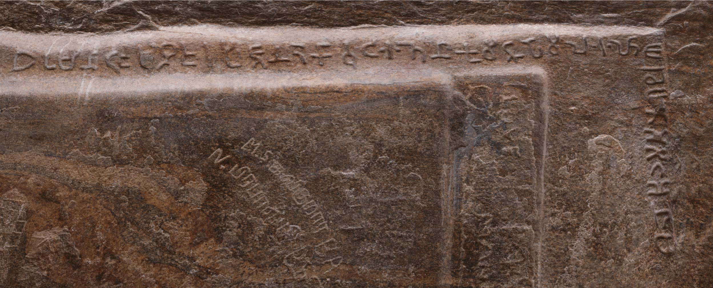 On a stone bed in the upper cave called Ēḻaṭippaṭṭam near the summit of the hill; deeply engraved along two adjacent sides of the bed; well-preserved.