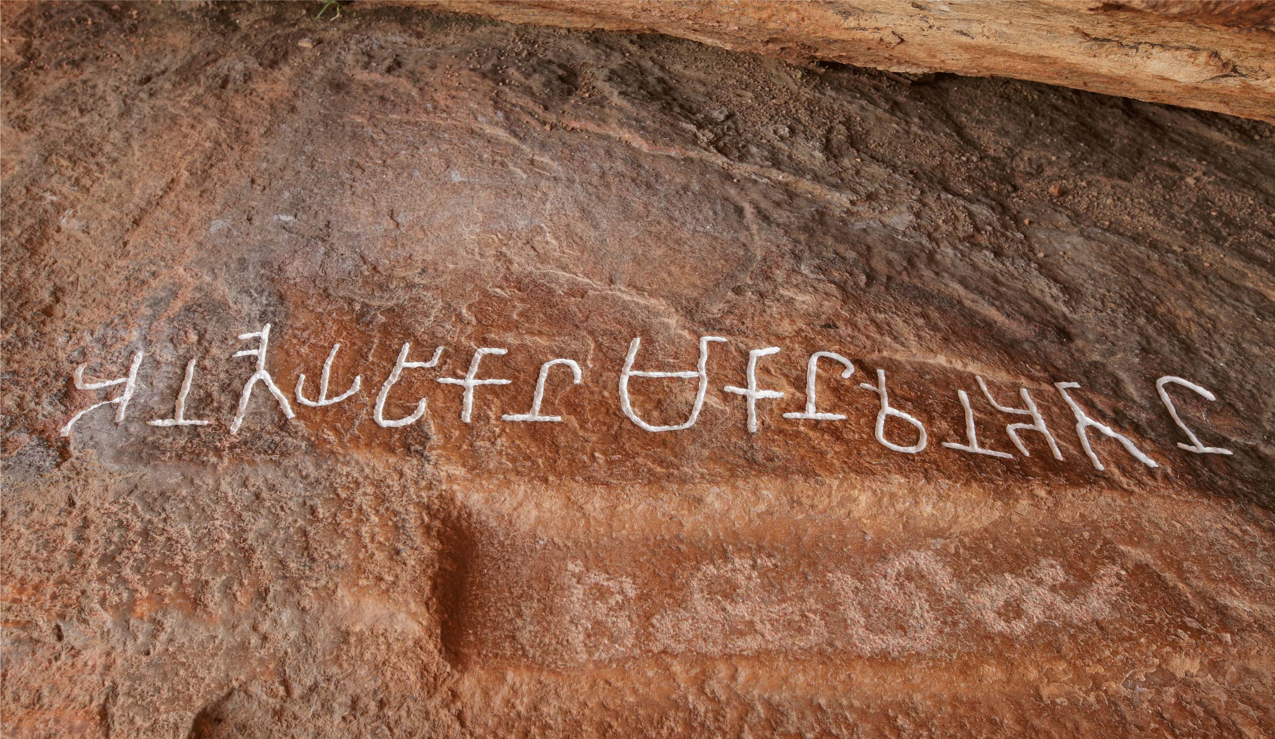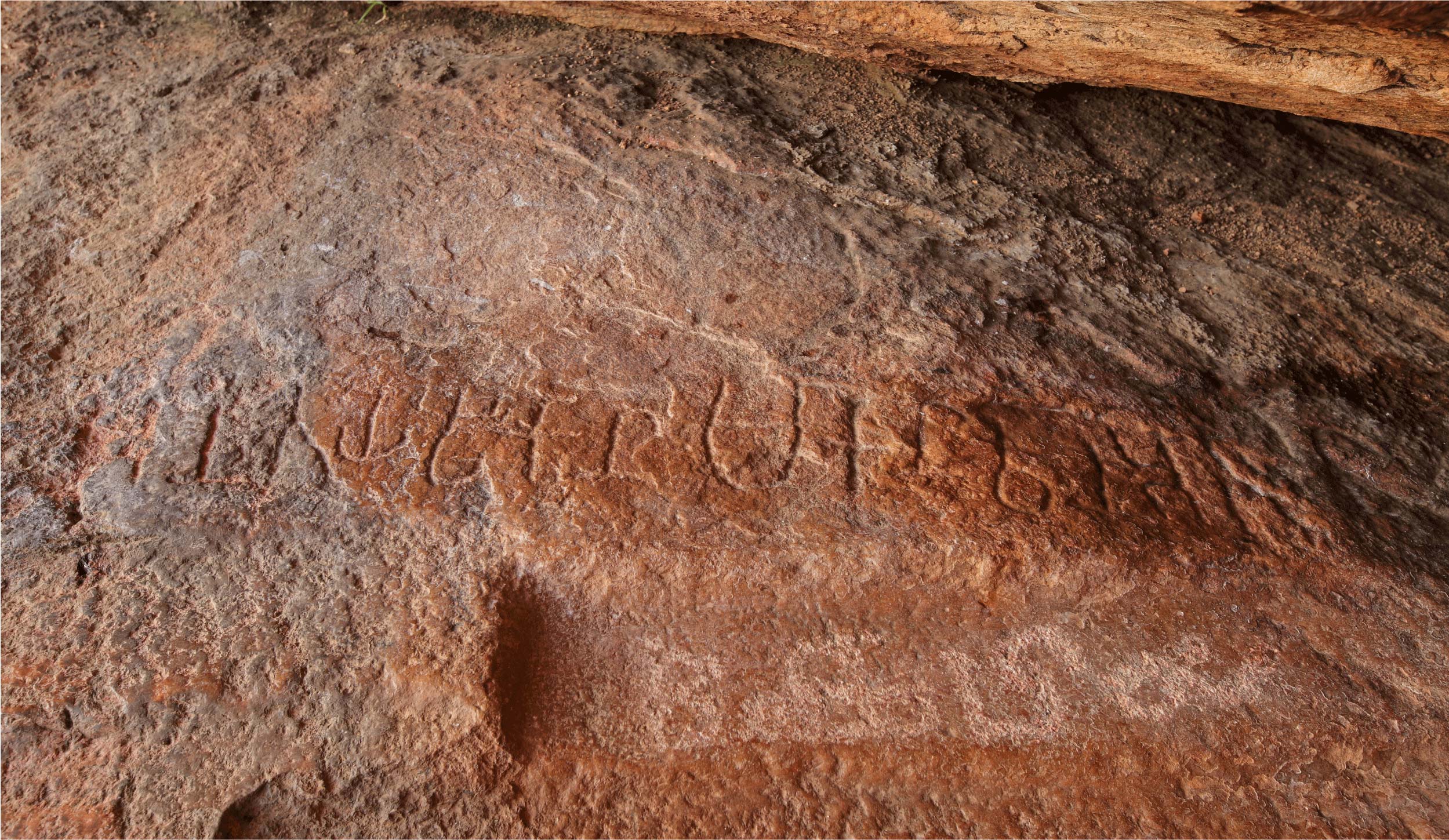 1. A short perpendicular line above and to the right of this letter is identified as a puḷḷi by Siromoney and Jebarajan (1978). On close examination in situ, it is seen to be a thin scratch on the rock surface.